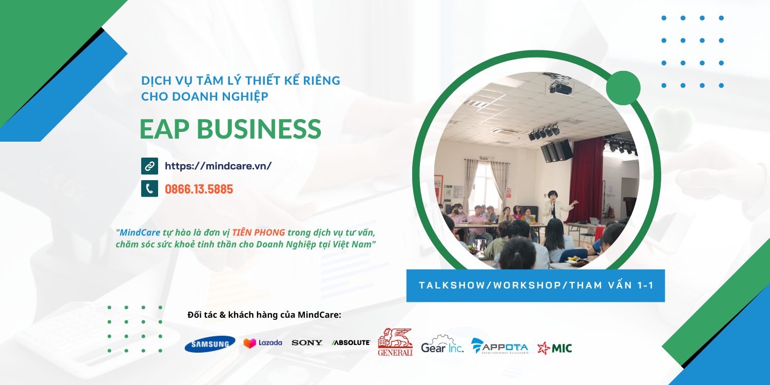 Hãy liên hệ trao đổi với MindCare để được hiểu rõ hơn về Chương trình “MindCare At Work” và có riêng một chương trình Chăm sóc sức khỏe tinh thần phù hợp và dành riêng cho doanh nghiệp, từ đó thúc đẩy hiệu quả công việc trong đội ngũ nhân viên, gia tăng lợi nhuận của doanh nghiệp, đồng thời nâng cao uy tín của công ty đối với nhân viên và khách hàng.